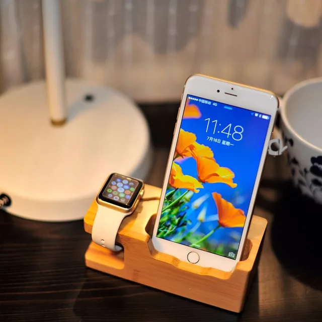 • Authentic quality: 100% Natural bamboo wood for Apple Watch cradle holder, inductive charger slots comfortably in the changing dock, simply place on the platform to use as clock while charging