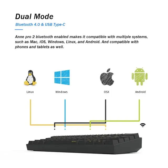 Connection : Dual Mode, USB Wired (Windows 7/8/10, for Mac, Linux) ,bluetooth LE4.0 (Windows 7/8/10, for Mac, Linux) ,Backlit 16.8 Million RGB Backlit