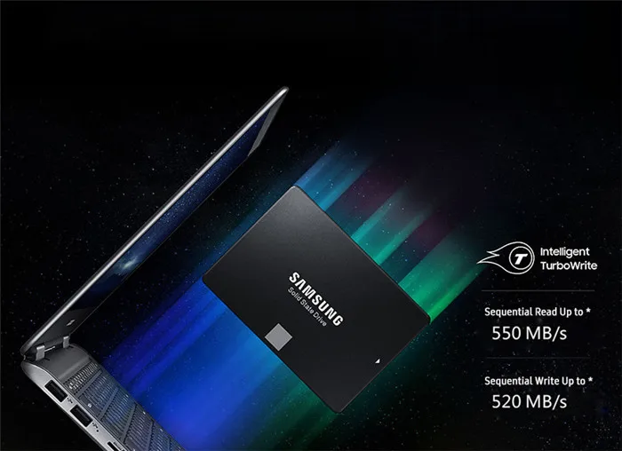 Speeds are more consistent, even with heavy workloads and multi-tasks. The 860 EVO performs at sequential writes up to 520 MB/s* with Intelligent TurboWrite technology, and sequential reads up to 550 MB/s. The TurboWrite buffer size* is upgraded from 12 GB to 78 GB for faster file transfer.